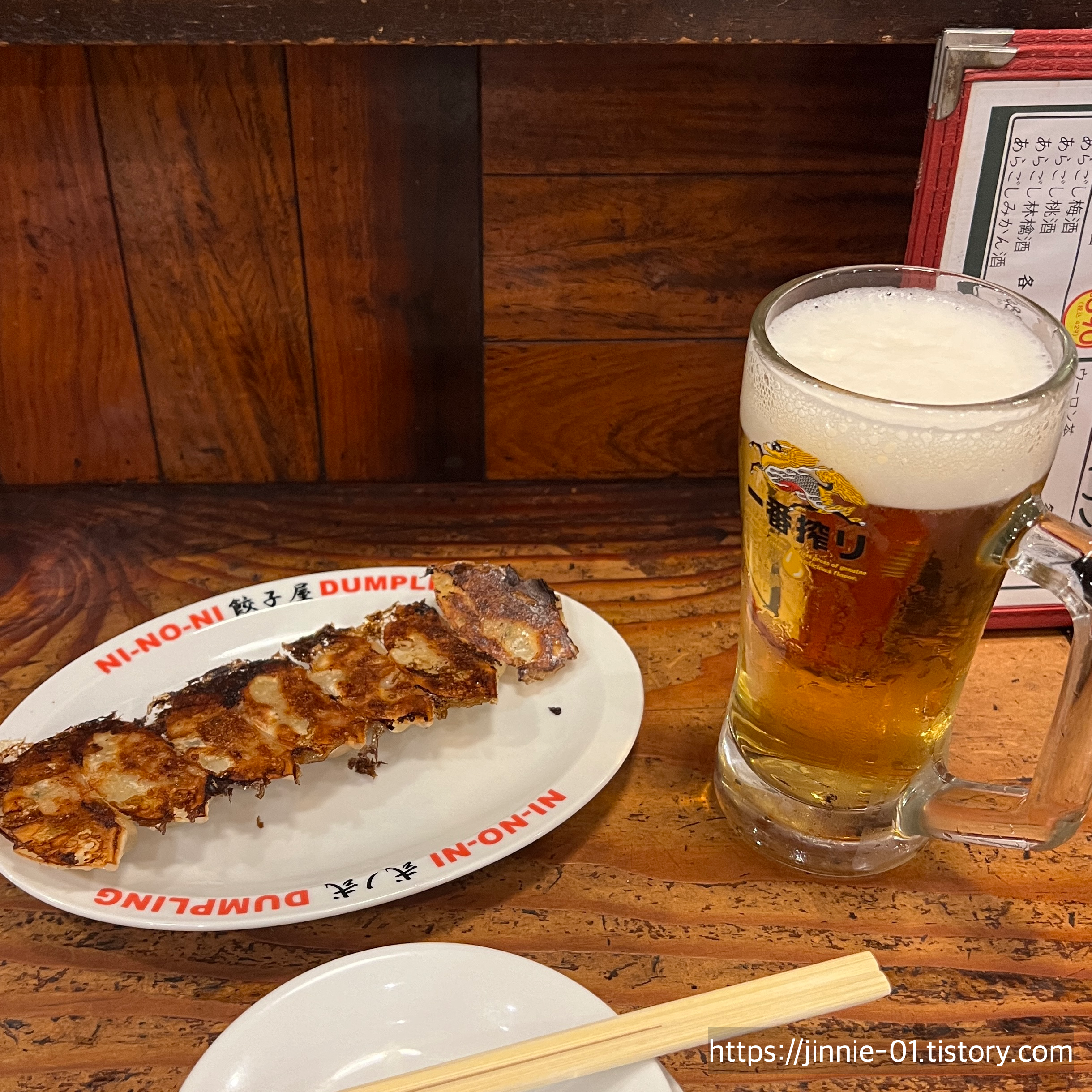 텐진역에서 도보로 10~15분 거리에 위치한 교자야 니노니입니다.